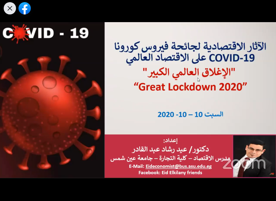 وذلك يوم السبت الموافق 10أكتوبر 2020 فى تمام الساعة السابعة مساء إلكترونيا (باستخدام تقنية الاتصال المرئي عبر منصة zoom)، وقد حضر الحلقة النقاشية مجموعة من الاقتصاديين والمتخصصين في مجالهم