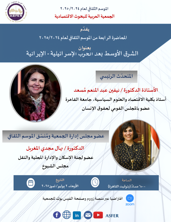 تستعرض المحاضرة التطورات الأخيرة في منطقة الشرق الأوسط الناجمة عن الحرب الإيرانية – الإسرائيلية، وتُناقش الآثار المترتبة على هذا الصراع وآليات التعامل معها لاستعادة الاستقرار للمنطقة.