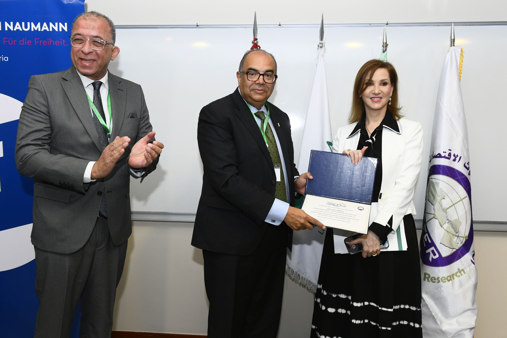 كما تكريم المشاركين والمنظمين والداعمين للمؤتمر: معالي وزير الاقتصاد والتجارة اللبناني الدكتور عامر البساط والدكتور عادل الوقيان المدير العام للمعهد العربي للتخطيط، والدكتور شوقي عبد الله رئيس الجامعة اللبنانية الأميركية، والدكتورة ديما جمالي عميدة كلية عدنان القصار لإدارة الأعمال،السيد كريستوف كليمان، مدير مشروع لبنان وسوريا في مؤسسة فريدريش نومان من أجل الحرية وممثلاً عن المؤسسة، وبنك فيصل الإسلامي المصري واستلامها الأستاذ محمد عبد الصبور ممثلاً عن البنك.