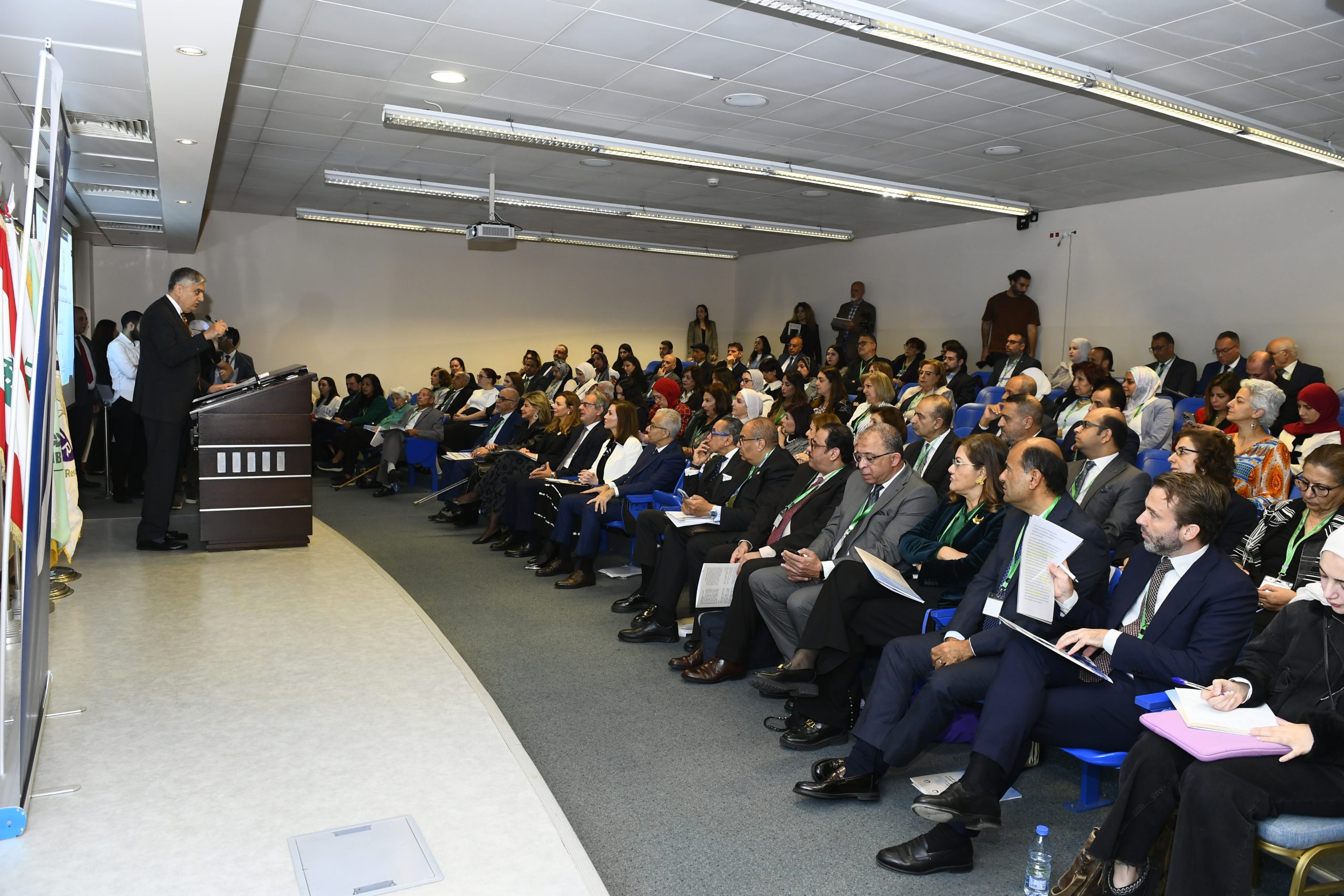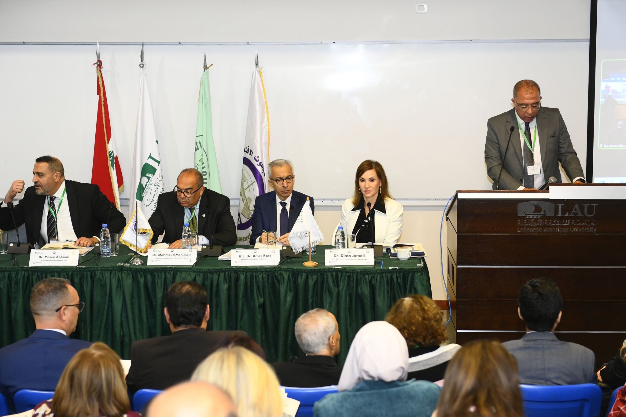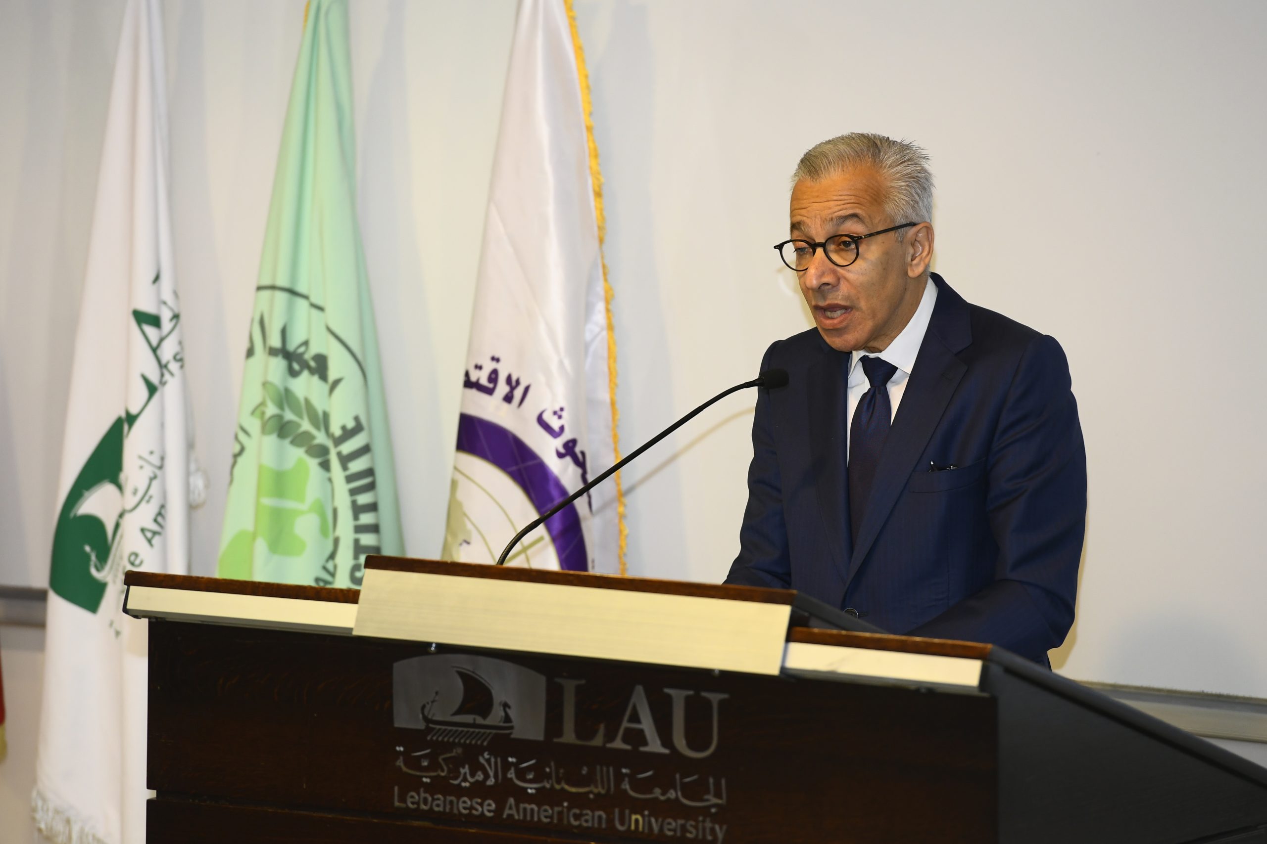 كما ألقى الدكتور شوقي عبد الله، رئيس الجامعة اللبنانية الأميركية، كلمة ترحيبية أكد فيها أن المنطقة العربية، ولبنان على وجه الخصوص، تمر بمرحلة تحولات اقتصادية وجيوسياسية وتكنولوجية عميقة تختبر النماذج التنموية التقليدية، الأمر الذي يستدعي البحث عن مسارات جديدة قوامها التنافسية والمرونة والرخاء المشترك. وشدد على أهمية الانتقال إلى الطاقة النظيفة، وتعزيز التنمية الصناعية، وتطوير الخدمات اللوجستية، والاندماج في سلاسل القيمة العالمية، فضلًا عن تهيئة أسواق العمل لعالم يُعاد تشكيله بفعل التقنيات الخضراء والذكاء الاصطناعي.
