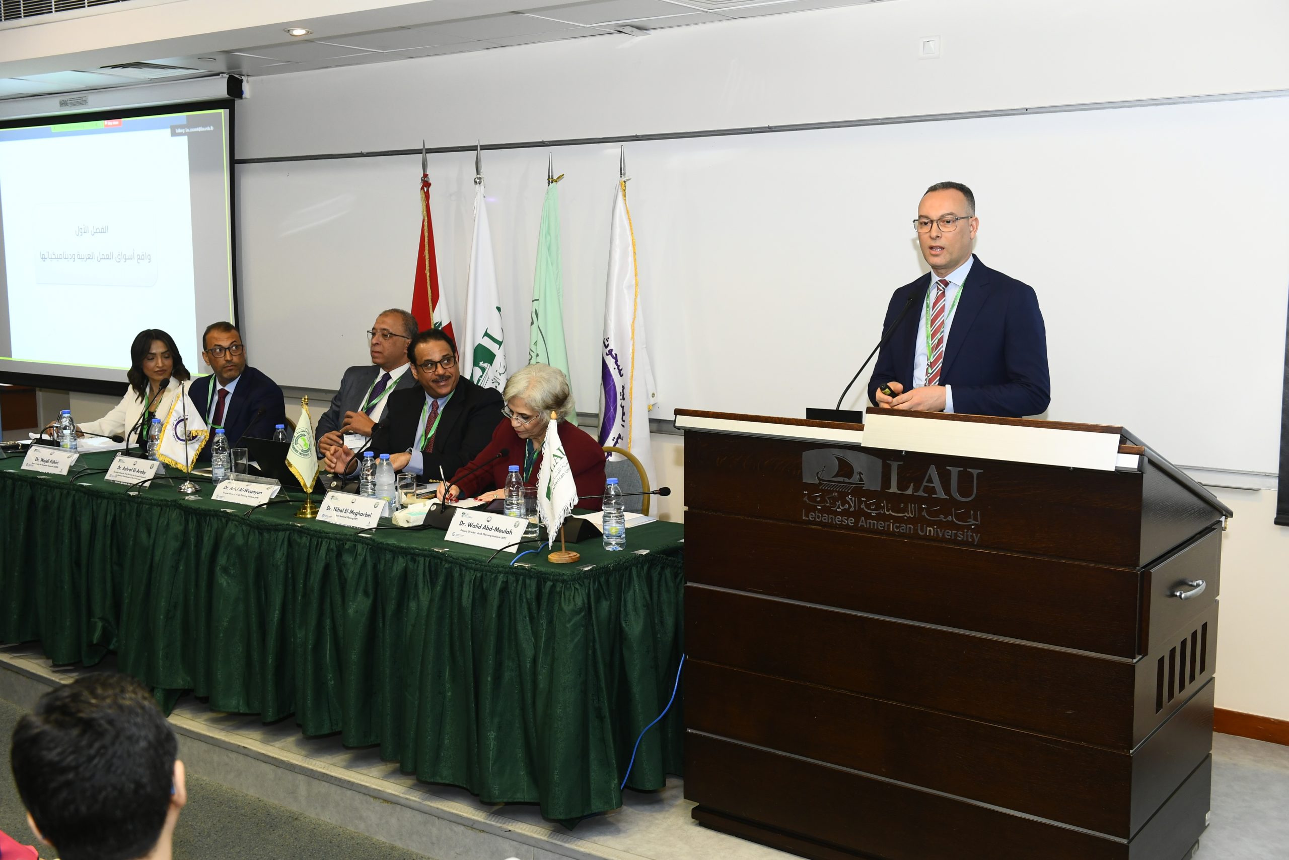 وقام بعرض الفصل الأول من التقرير والذي يحمل عنوان “واقع أسواق العمل العربية وديناميكياتها” الدكتور / وليد عبد مولاه – وكيل المعهد العربي للتخطيط.