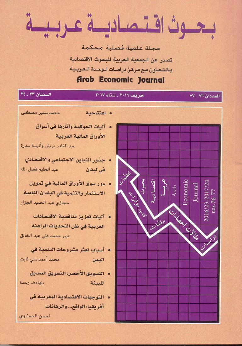 صدر العدد المزدوج 76 – 77 ، خريف 2016 – شتاء 2017 من مجلة بحوث اقتصادية عربية متضمناً بعد افتتاحية رئيس التحرير – ثمانية دراسات